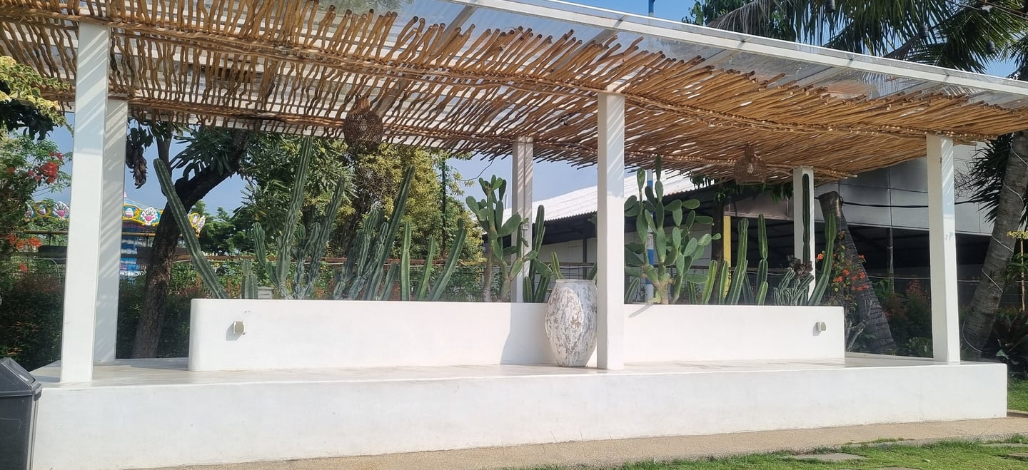 Nikmati waktu santai bersama keluarga di gazebo nyaman yang terletak strategis di sekitar kolam. Dengan atap teduh dan ruang luas, gazebo menjadi tempat ideal untuk beristirahat sejenak, menyimpan barang, atau sekadar menikmati suasana sambil mengawasi anak-anak bermain air. Suasana asri dan dekat dengan wahana membuat pengalaman liburan Anda di Saygon Waterpark semakin lengkap dan menyenangkan!