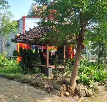 Gazebo dengan nuansa tradisional membuat suasana istirahat semakin nyaman