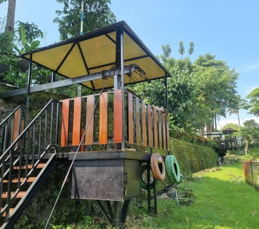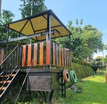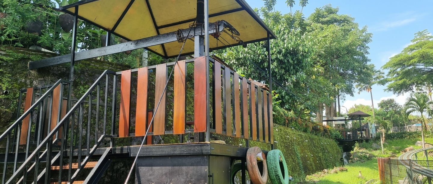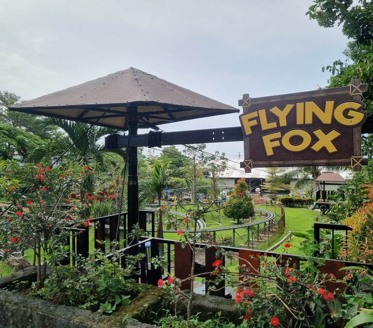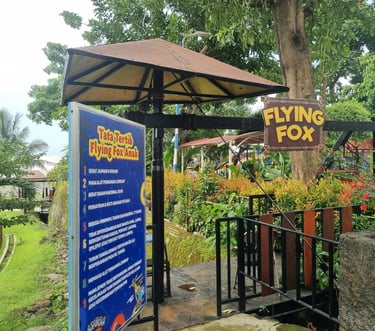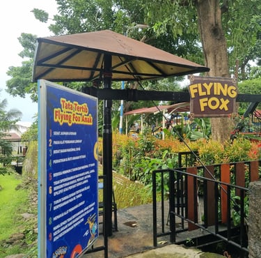 Flying Fox Saygon membentang dari ketinggian sekitar 5 meter, memberikan pengalaman meluncur dari atas sambil menikmati pemandangan indah area waterpark dan pegunungan sekitar. Cocok untuk kamu yang ingin tantangan ringan tapi tetap memacu adrenalin.