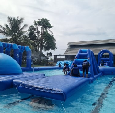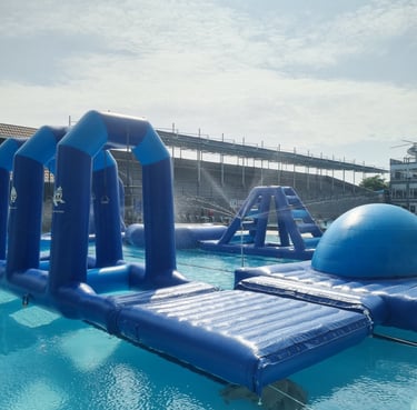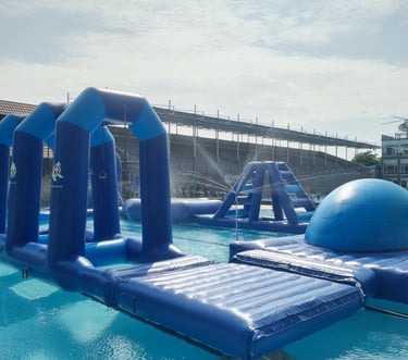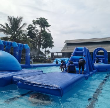 Wahana ini menghadirkan sensasi berbeda, berjalan, melompat, dan memanjat di atas air! Dengan balon-balon udara besar dan area permukaan yang empuk, pengunjung bisa bebas beraksi layaknya pahlawan super.