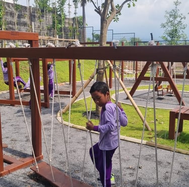 Mulai dari seluncuran mini, trampolin, terowongan, jembatan tali, hingga arena panjat mini semua ada di sini! Anak-anak bisa bebas bergerak, menjelajah, dan melatih motorik kasar mereka sambil bersenang-senang.